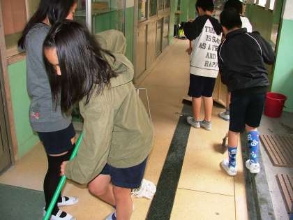 新しい学年で,そうじ分担場所も増え,がんばって最後までやり遂げることを目標にそうじをします。