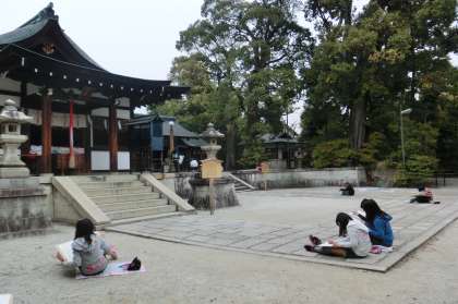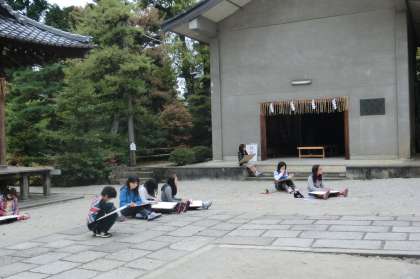 写生をしました。こま犬の前を選んだ子や社の前を選んだ子など