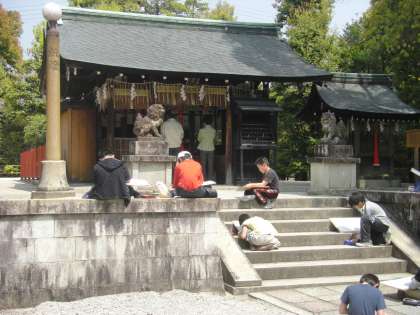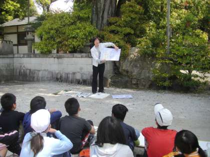 先週の水曜日,木曜日に,わら天神へ写生をしにいきました。まずは,柳澤先生から,えがき方のコツや,遠近の取り方を教えていただきました。その後,それぞれが,えがく場所を決めて,写生を開始。子ども達は,すがすがしい気候の中で,静かに集中して写生をしていました。