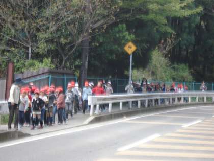 氷室から,原谷まで約1キロの急坂をみんなで歩きます。