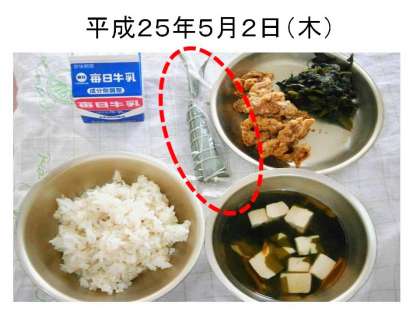 5月5日は子どもの日。それにちなんで,給食も子どもの日献立があります。今年は麦ごはん,牛乳,鶏肉のこはく揚げ,ほうれんそうのおかか煮,すまし汁,粽でした。