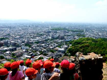 頂上の大の字の上から見ると京都タワーが小さく見えます。