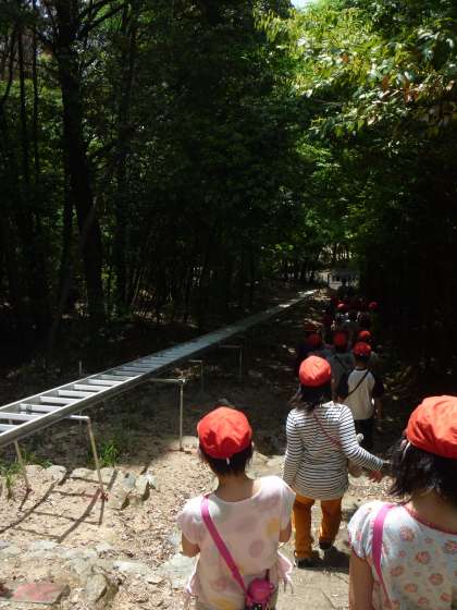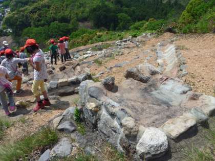 山麓には,搬出入用のレールや火床を見せていただくことができました。