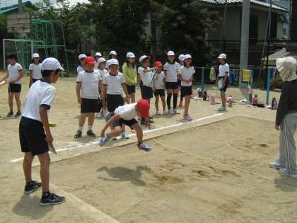 5年生が体力テストをしています