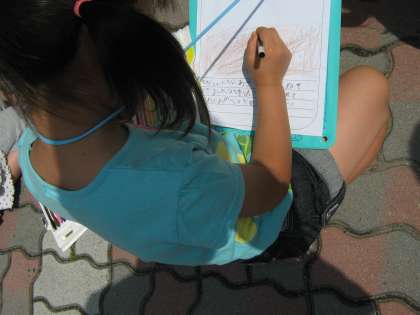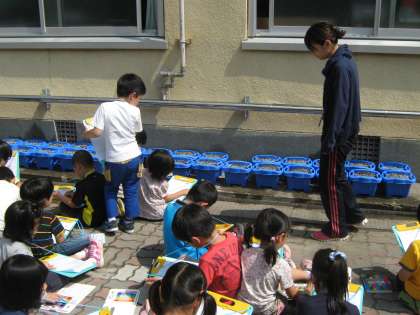 1年生が、生活科の学習で、植木鉢にアサガオの種をまきました。種の様子や植木鉢の様子などを観察カードに絵と文で書きました。いつ芽が出てくるか、毎日しっかり観察しましょう。水やりなどのお世話も忘れずに。何色の花が咲くのか、楽しみです。