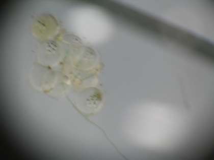 メダカのたまごをたくさん手に入れましたので,顕微鏡を使って観察しました。産まれたばかりのたまごと,もうすぐメダカになるたまごの観察をしました。