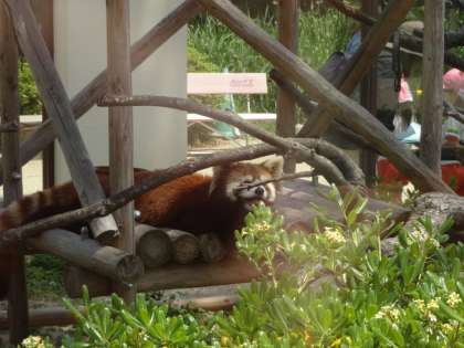写真は上から,2階廊下部分から見たキリン。今日はお昼寝ばっかりだったトラ。子ども達に大人気だったレッサーパンダです。