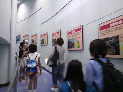 大鳴門橋記念館の内部の様子です。パネル展示を見ながら学んでいます。