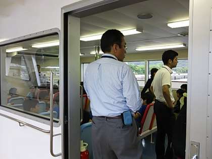 観潮船の内部の様子です。乗る前に外から見ていたよりも、広くて快適です。もうすぐ渦潮を見ます。楽しみです。