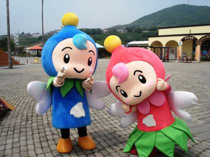 「淡路ワールドパークonokoro」で,お出迎えをしてくれた「おのりん・ころりん」です。