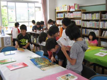 3月で休校になった中川小学校から、図書を1500冊以上いただきました。図書ボランティアの保護者の方や、図書支援員の方にお世話になり、整理と整備をしていただき、ようやく6月から図書室を開館することができるようになりました。