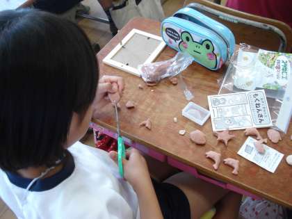 子どもたちは,いただいた粘土を使って写真立てをつくりました。