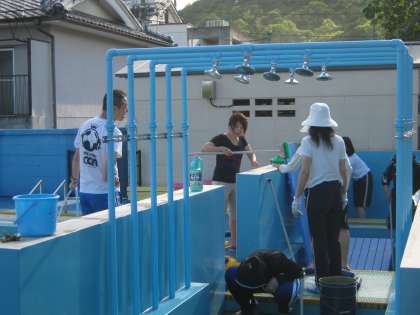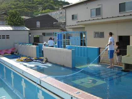 今日は、放課後に教職員みんなでプールサイドや腰洗い槽、更衣室などの掃除をして、用具の準備などをしました。17日(月)から水泳の学習を始めます。自分の目標を決めて、少しでもたくさん泳げるようにがんばりましょう。