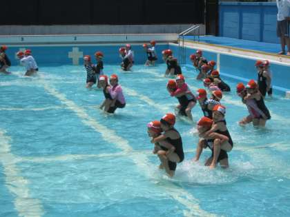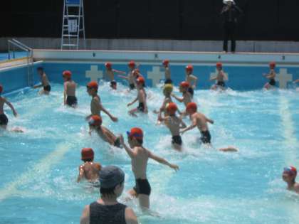 いよいよ今日から水泳学習を始めました。かんかん照りというわけではないのですが、朝から蒸し暑く、プールに入るには適した日です。