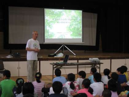 7月3日に衣笠山にて森林教室を行いました。森林インストラクターの方に来ていただき,森と人との関わりや森の役割について教えていただきました。
