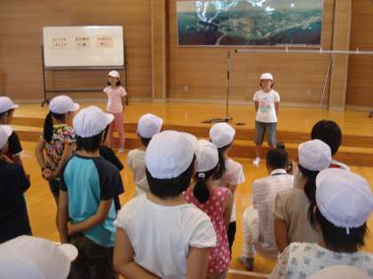 入所式の後、みんなで「避難訓練」をしました。