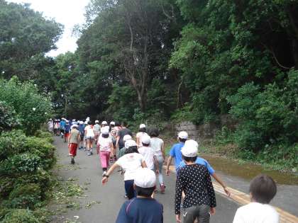 津波が来たときに高台ににげます。