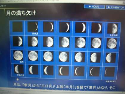 月の満ち欠けについて,インターネットのシュミレーションサイトを利用して,調べました。