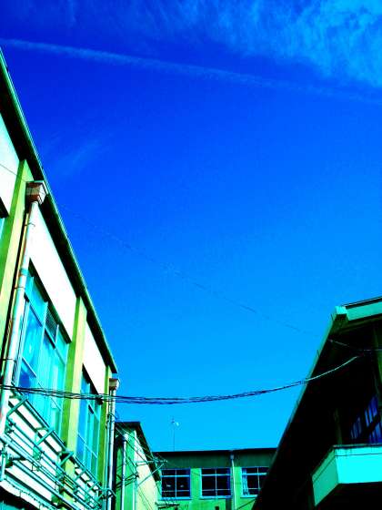 9月に入ってから,大雨や台風からの熱帯低気圧の影響などで,きれいに晴れ渡った日が少なかったのですが,今日は朝から真っ青な空に飛行機雲がきれいに引かれ,秋晴れの空のもと,元気に子どもたちが遊んでいます。