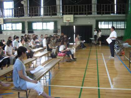講堂にて、5年生の長期宿泊の説明会を実施しました。今年度の長期宿泊は、10月7日(月)〜11日(金)の4泊5日の日程で、京都市野外活動施設「花背山の家」で行います。今日は、当日に向けて活動内容や予算、持ち物などについての説明をさせていただきました。