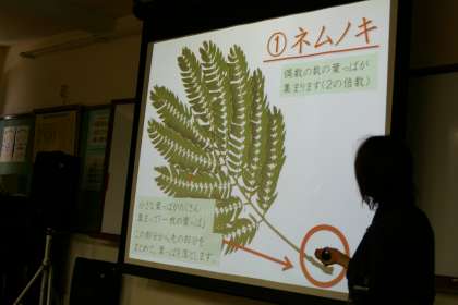 第2グランドの樹木の種類や特徴などを,植木屋さんの観点で詳しく教えていただきました。