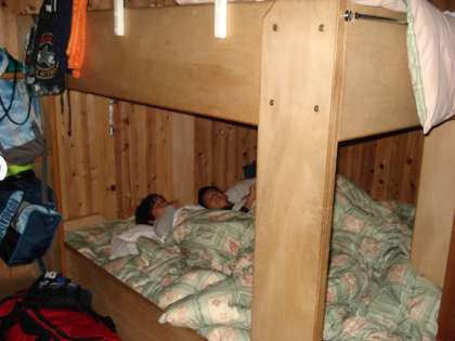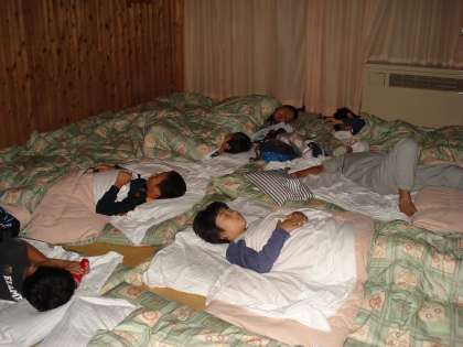 就寝時刻には、みんな布団の中に入りました。入るとすぐにぐっすり眠った子どももいました。