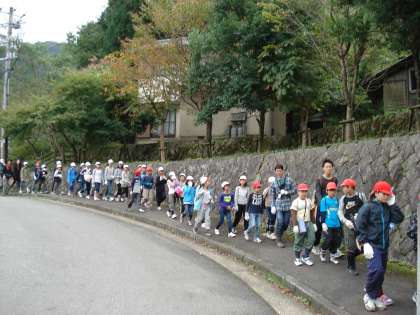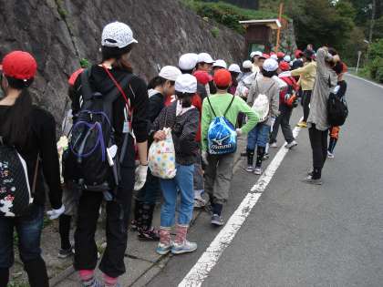 服装のチェックと、虫よけヒル除けを子どもたちに施したあと、花背山の家より出発です。