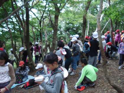 花背山の家から、3時間歩いて天狗杉頂上に到着しました、山の頂上から京都市内が、