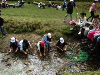 11時30分ごろに、百井キャンプ場に到着しました。お弁当を食べたり、川で遊んだりして過ごしています。いいお天気なので、川で遊ぶのも心地よいです。3時までには山の家にもどる予定です。その後お風呂、夕食をすませて、いよいよキャンプファイヤーです。