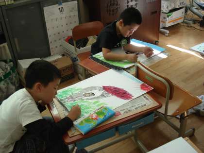 1年生が先日行ったいもほりの様子を,絵にしています。