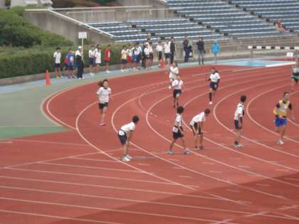 子どもたちは,記録会などで何度も走っている西京極陸上競技場ですが,いつもと違う雰囲気で緊張していました。