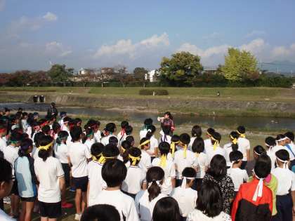 鴨川河川敷で,京都市小学校北下支部七校の6年生による駅伝競走交歓会を行いました。