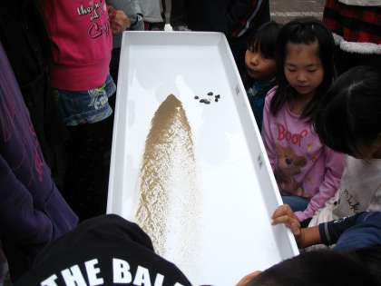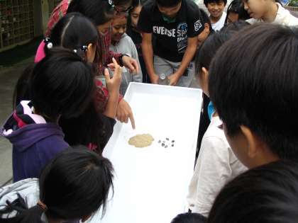 流れの速いところでは,小石と砂は流されました。軽い砂は小石よりも遠くまで流されることがわかりました。