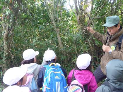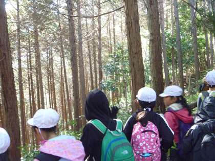 途中何度か時雨れることがありましたが,秋らしい空が何度も顔をのぞかせる中,衣笠山へ森林教室に行ってきました。森林インストラクターさんに,衣笠山の不思議や魅力をたくさん教えていただき,子どもたちは大喜びでした。以前に増して,衣笠山のことが大好きになったようです。今後の,スーパーエコスクール金閣の活動に生かしていきたいと思います。引率のお手伝いをしていただいた保護者の方々もありがとうございました。大変助かりました。
