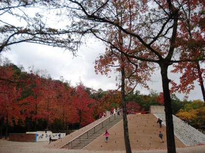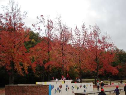 宝ヶ池「子ども楽園」は,紅葉真っ盛りで,赤や黄色のはっぱでいっぱいでした。