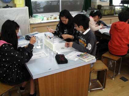 そこで今週は,子ども達ひとりひとりがリトマス紙を使って水よう液の性質を調べる実験をしました。普段はグループで協力して実験することが多いのですが,自分一人で実験することで,水よう液の性質についてじっくり調べることができました。