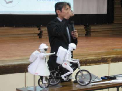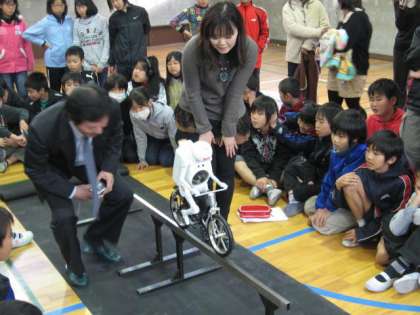 「小学生への環境学習事業」を5・6校時に講堂で実施しました。今回は6年生を対象として、村田製作所の方にお越しいただき、「見つけよう!!自分の夢を〜ムラタセイサク君の開発講話と実演〜」というテーマでお話をしていただきました。自転車で走るムラタセイサク君や、一輪車で走るムラタセイコちゃんを実際に見せていただき、子どもたちは大喜びでした。村田製作所の皆様、ありがとうございました。