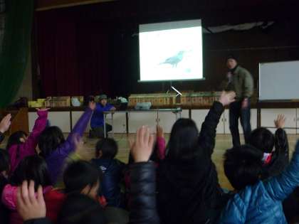 まず初めに,いろいろな鳥の紹介をしていただき,子どもたちは大喜びでした。