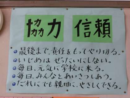 い,ろ,は組の学級目標を教室に掲示しています。