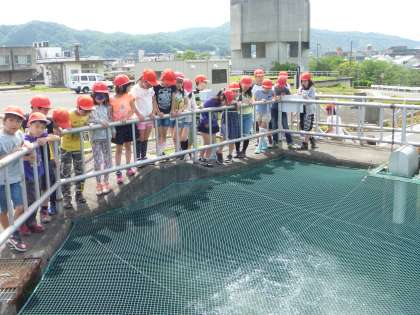 実際に見たり,聞いたり,触ったりして,水がきれいになっていく様子を興味津々で学習することができました。