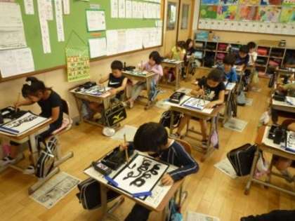 書写の学習で、初めての習字をしました。