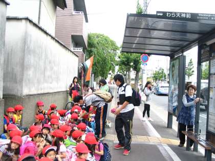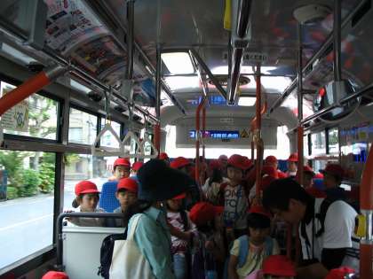 今日は校外学習で植物園に行きました。市バスに乗って行きました。席をゆずり合い,マナーを守って乗車しました。