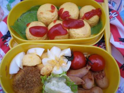 愛情たっぷりのお弁当を,ニコニコ笑顔で食べました!