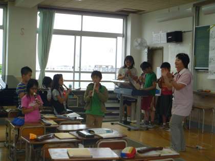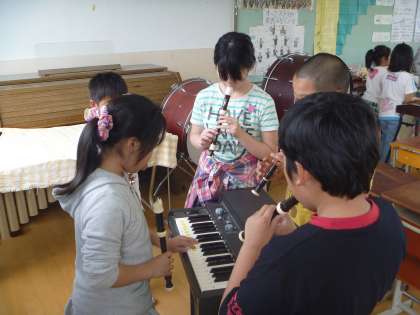 リコーダーと低音(バスオルガン・木琴)とで,違う旋律を演奏するのは最初は難しかったようですが,徐々に慣れてきて,最後には音楽室にきれいな合奏が響き渡りました。