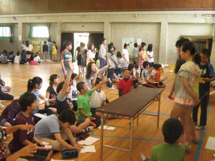 事前学習として,グループごとに「地震」「世界遺産」「うずしお」「中国」の4つのテーマに分かれて調べ学習をしました。