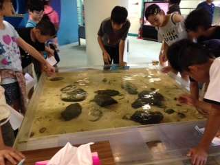 パネル展示や生き物紹介,体験コーナーなど,順番に見て回りました。