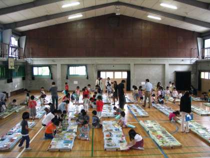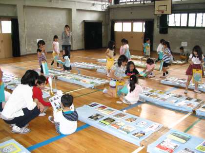 今日,講堂で選書会を行いました。たくさん並んだ本の中から,自分のお気に入りの1冊を見つけました。本がとてもたくさんあったので,お気に入りの本が何冊もあり,1冊だけ決めることに苦労している子どもたちもいました。