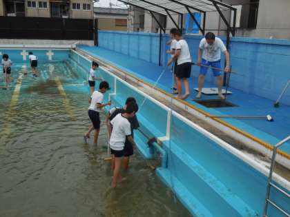 い組→ろ組→は組→に組の順に1時間ずつ交代しながらプール掃除をしました。