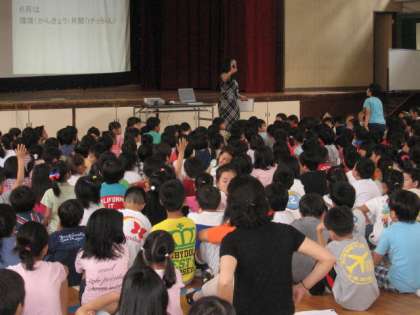 朝会で,校長先生から環境月間についてのお話をしていただきました。