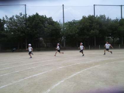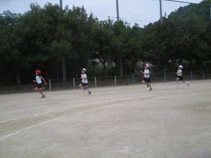 運動会に向けて、種目の練習を始めました。まずは、80m走の練習です。